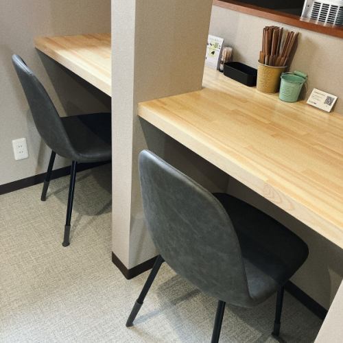 【仕切り付きカウンター1名様×2席】カウンター3席のすぐ隣には、1席ずつ仕切りの付いた「おひとり様席」をご用意!お仕事帰りのサク飲み・ちょい飲みや、しっぽりと飲みながらお料理を楽しみたい方にぴったりです♪